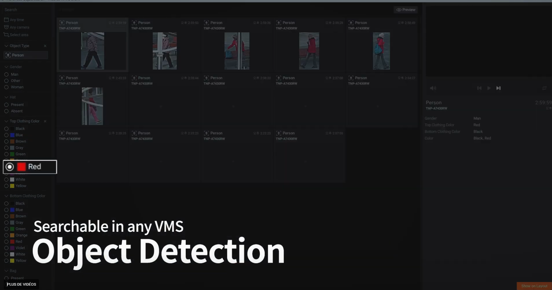 - Classification d'objets précise : Son moteur d'analyse ne se contente pas de détecter un mouvement. Il identifie et classe avec précision les personnes (en reconnaissant même la couleur des vêtements), les visages, les véhicules et les plaques d'immatriculation. Résultat : des recherches forensiques extrêmement rapides et efficaces dans les enregistrements.